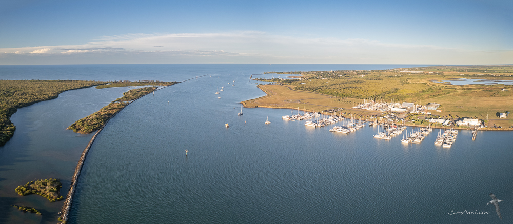 Here is what the marina looks like from the air. Can you spot the blue boat?