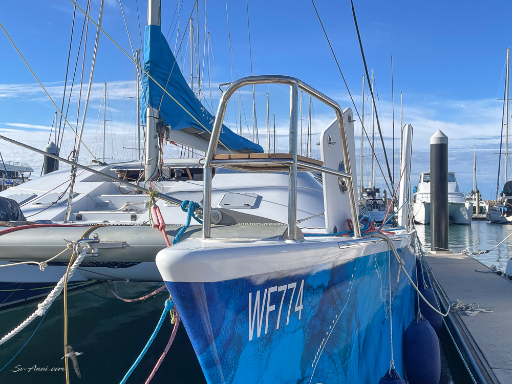 The rest of the week went well thankfully. We picked up our parcels: a portable drive full of movies courtesy of our friend Trevor, two new batteries for the drone as the old ones were looking swollen, Wade’s medical results were excellent, and our friends on Roo Bin Esque made it to Burnett Heads on Tuesday. Both catamarans are refueled and re-provisioned. Roobi is anchored in the river. Anui is staying at the Bundaberg Port Marina till the weekend when Scott is bringing the prodder back and reinstalling it.