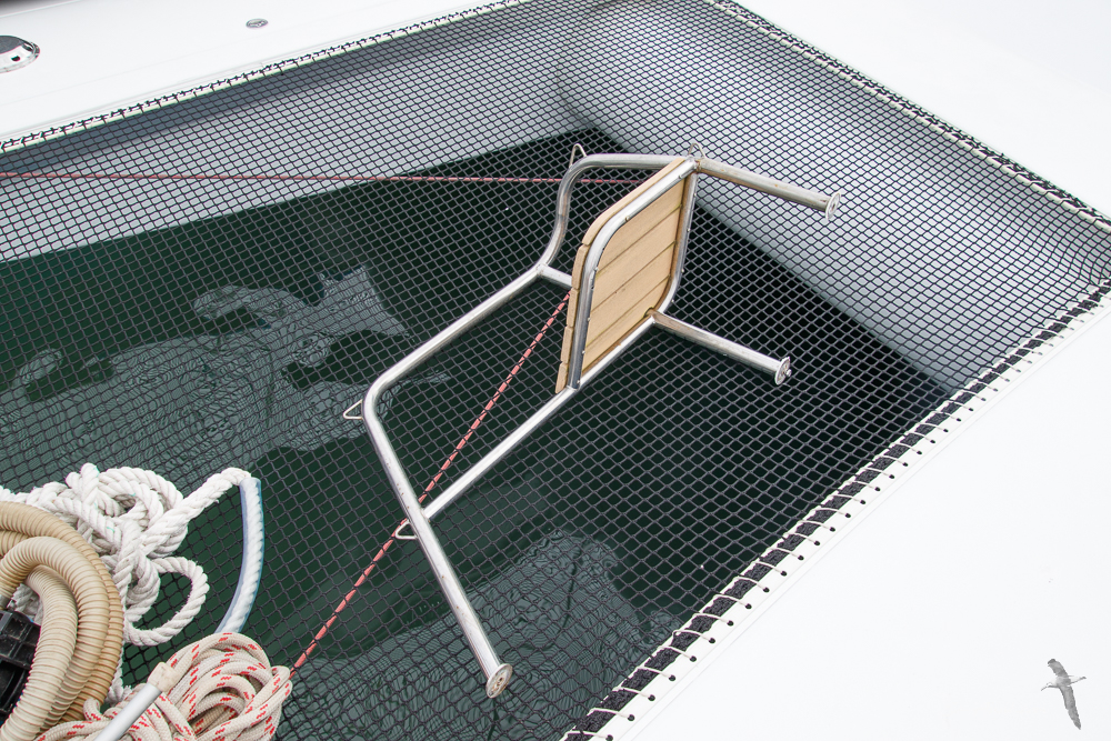During the next few days we took care of other minor damage we did. We bundled the screecher into a trolley and spread it out on a huge patch of grass at the marina, found a small tear where it caught under a sharp bit of the bow seat, patched it then rolled the sail neatly and got it back on deck. We have reseated the bow seat which had been partly pulled off the deck under pressure, replaced a broken navigation light that got smashed when the prodder jumped up against the A frame, and Scott rejoined the endless loop furling line. We are under control again!