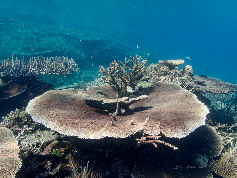 We did try a snorkel among the bommies you see in the photo, but unfortunately they have been terribly damaged by the latest round of bleaching, leaving very little alive.