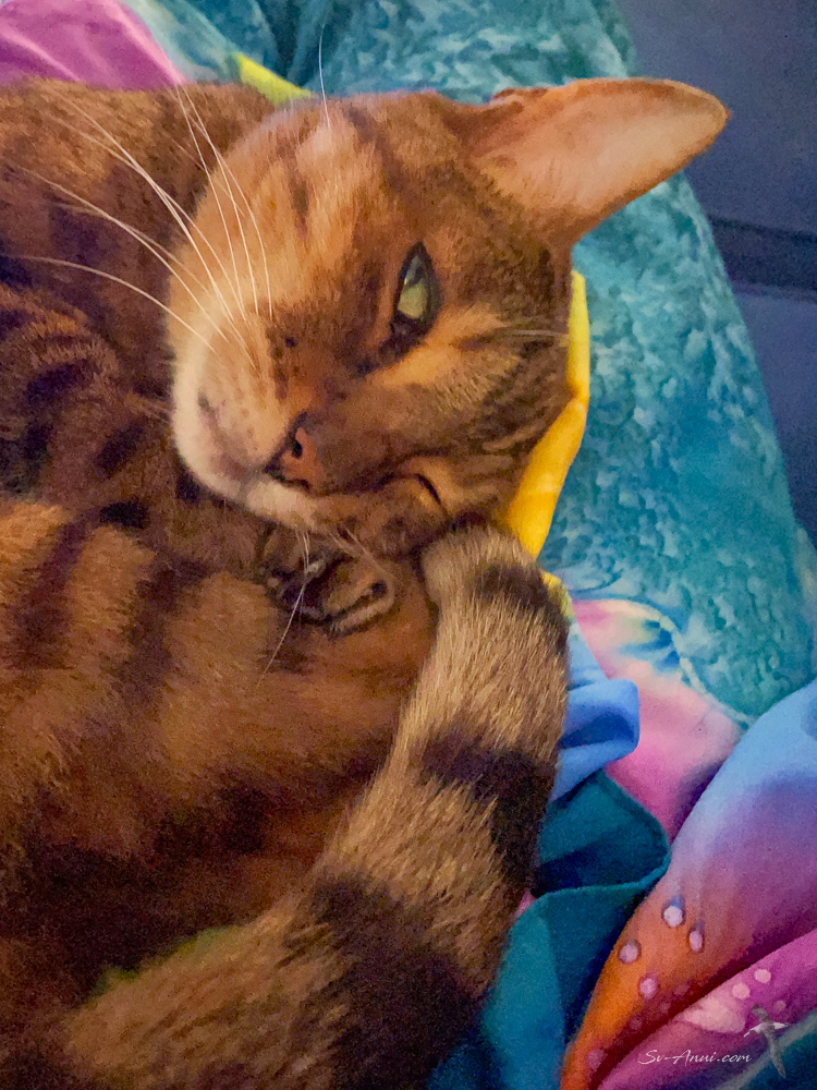 • Tail cuddles for you, Mary. Thanks for saying hello. Yes the ‘goat’ is super comfy especially when it is cold. I like to knead it and bury myself in it.