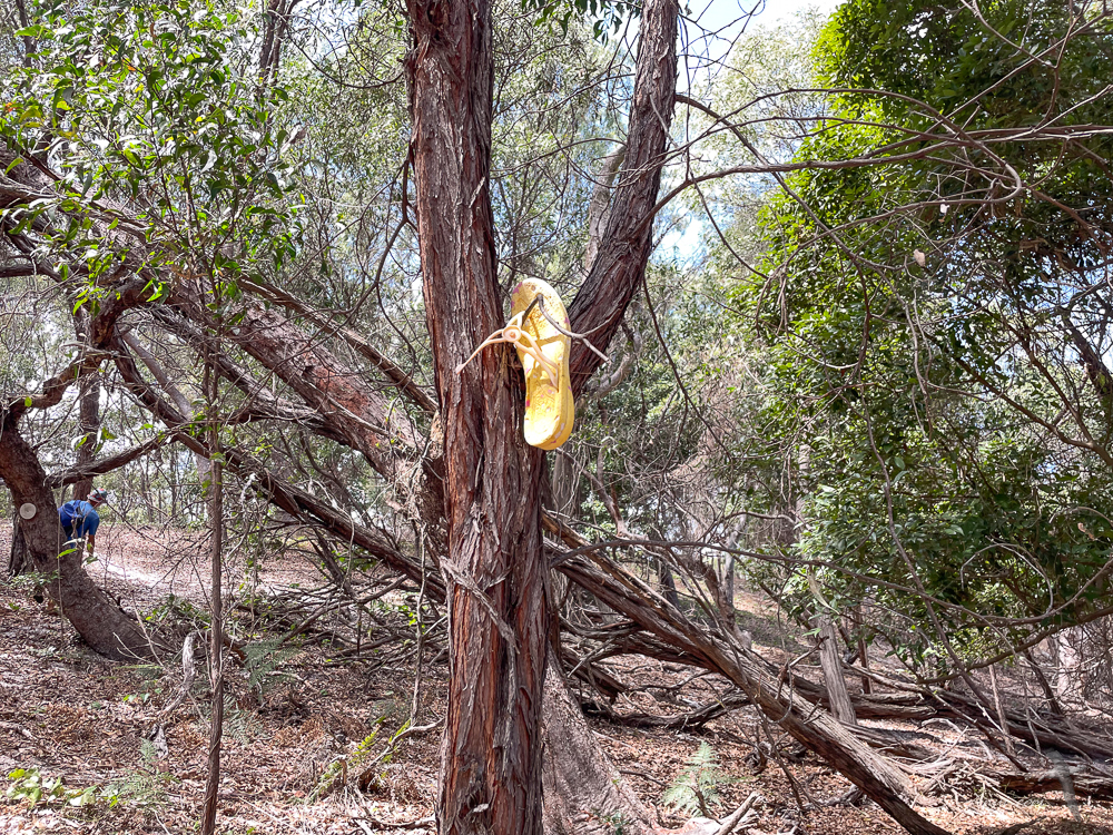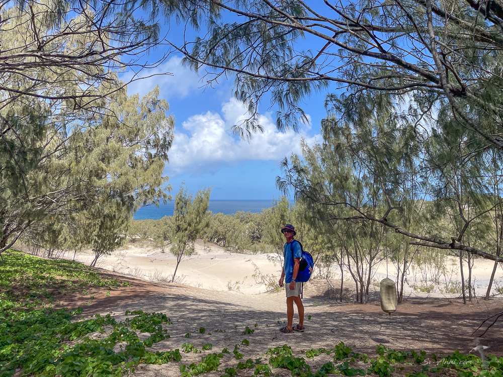Our tandem kayak got a bit of use to get to the beach for bush walks and to paddle around the lagoon at high tide. We particularly enjoyed the hike to Rescue Bay, on the southern side of the island. It was not a well defined track but it was fun following the markers made of found objects and we enjoyed the swim in the ocean once we got to the water.