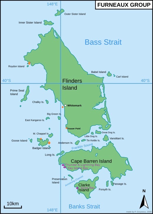 Here is the same map as last week, but this time we are focusing on the southern end of the Furneaux and have marked the spots in purple.