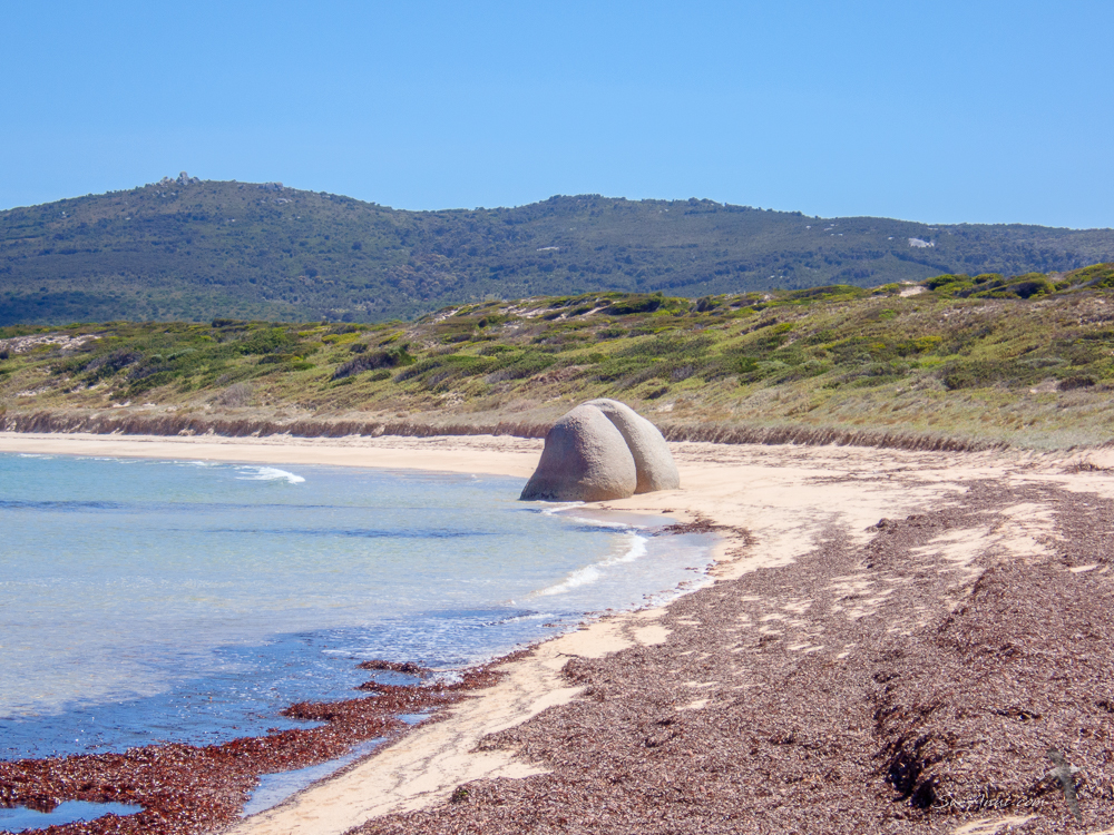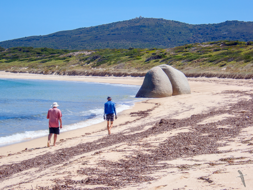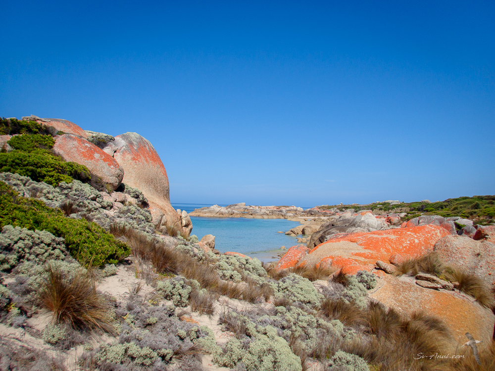 One of the pleasures of meandering around these parts are the colours and textures. The sand, the dry ribbonweed, the granite boulders, the orange lichen, the exquisite blues on a sunny day… everywhere you look something catches your eyes.