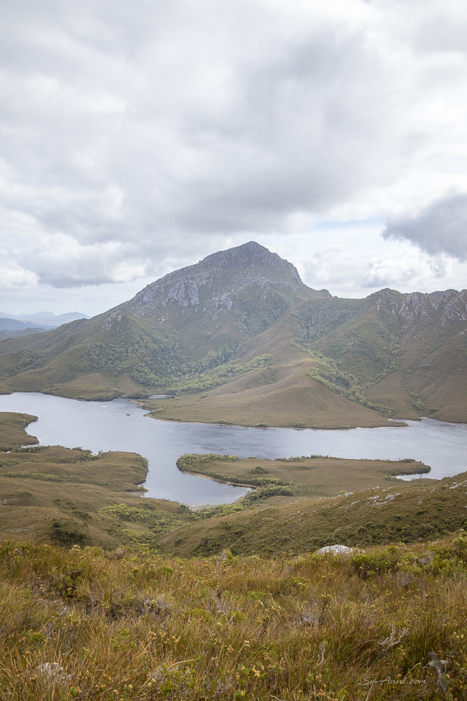 We have been hiking a lot on this trip. It is one of the pleasures of this circumnavigation and something we have not experienced for a long time. It is also a rewarding way to discover the waterways and ranges from up high. Last week we left you at Iola Bay, after Wade climbed Mt Rugby. It turns out Mt Rugby is omnipresent once you reach Bathurst Harbour. Every shot you take, it is there, dominating the landscape.