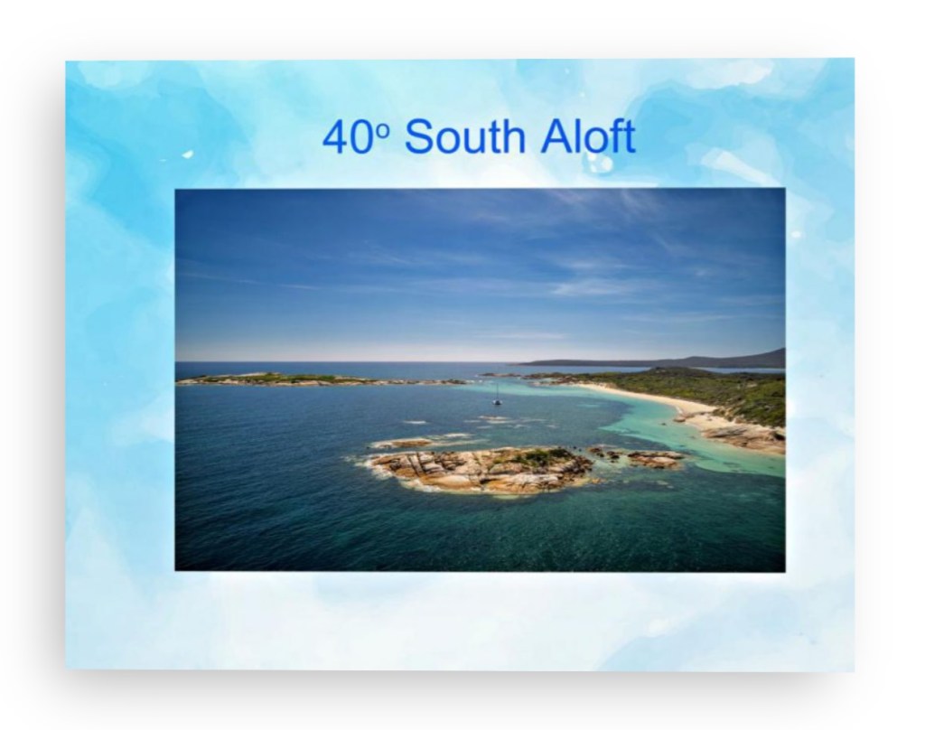 While stuck in Jervis Bay for a week hiding from an East Coast Low, we have been busy putting the finishing touches to our Tasmanian Cruise Story and coffee table Photobook of aerial photos!