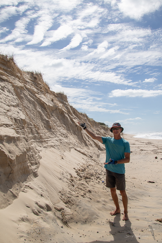 The erosion on the beach dunes after cyclone Alfred is bad, with a 5m high sand wall making access on and off the beach difficult.
