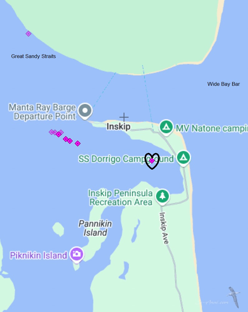 The next day we pushed on all the way past Double Island Point to get through the Wide Bay Bar at high tide in the late afternoon while wind and swell were acceptable. With some strong weather forecast for the following 5 days, we decided to hide in shallow Pelican Bay, near Inskip Point. No crowds, no wakes, flat water, options for walks ashore and paddles in the kayak… that would do!