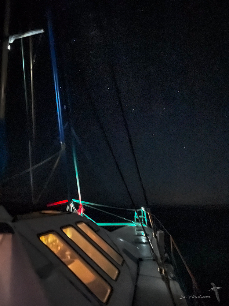 Despite the fact we motored back all the way, the night was gorgeous, with the milky way and moon lighting our passage, and phosphorescence in the ocean. It is rare we get the conditions for night shots, but these will give you a feel for what it was like.