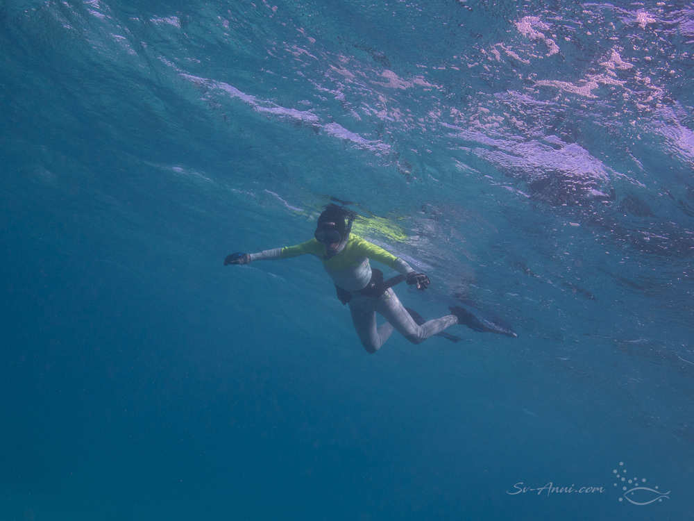 Snorkeling at low tide along the entrance wall to the lagoon was worthwhile, even if only the girls took part. The first dive being in 15 to 20 knot wind was a little choppy, however the second snorkel was much easier the next day when the wind had died down.
