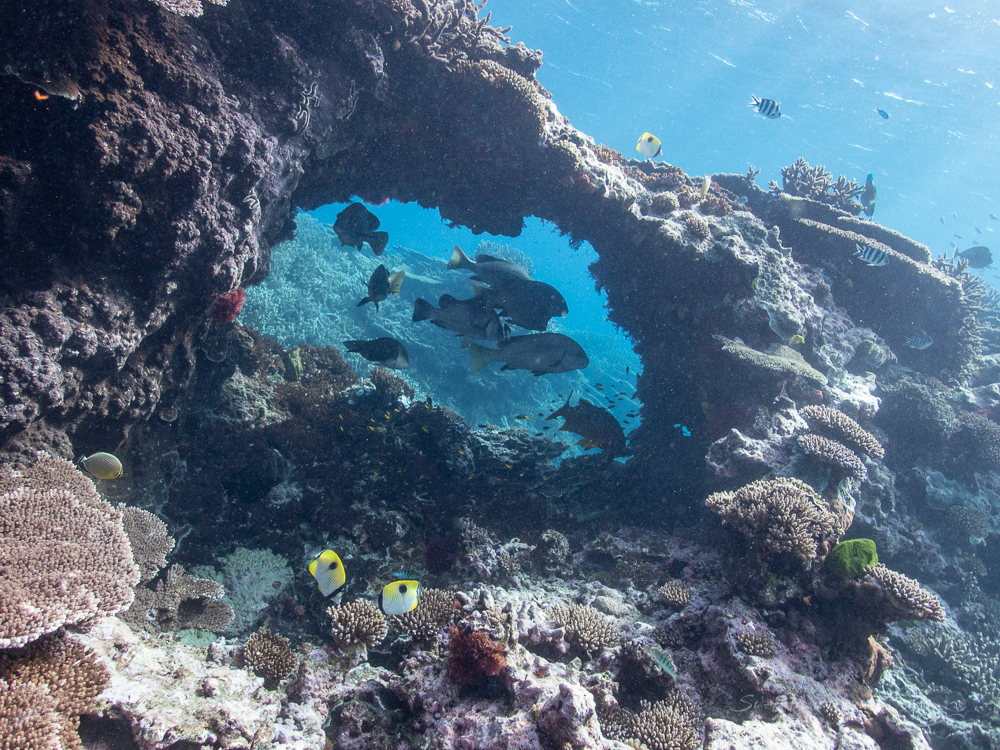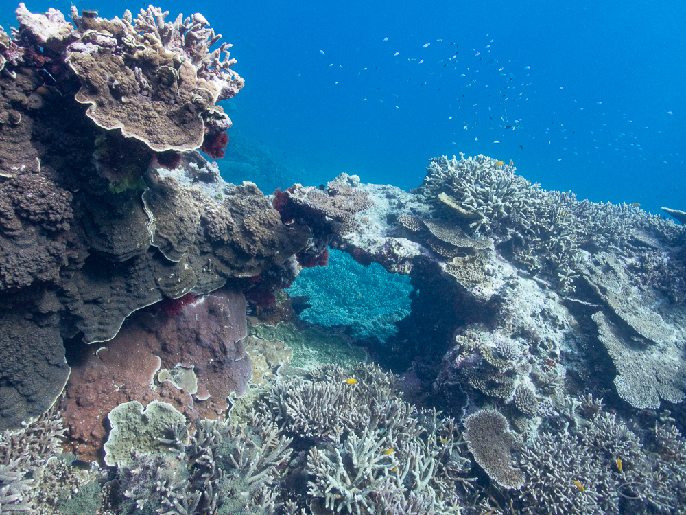 The water is clear and the coral varied with a mix of plates, branches, boulders and encrusting textures but it is mainly in shades of beige, green and dark brown, with few bright colours. However the underwater seascapes look vast and there are interesting arches and dive throughs, which were fun. Although not what it used to be, Lady Elliot is one of the better reefs we have visited.