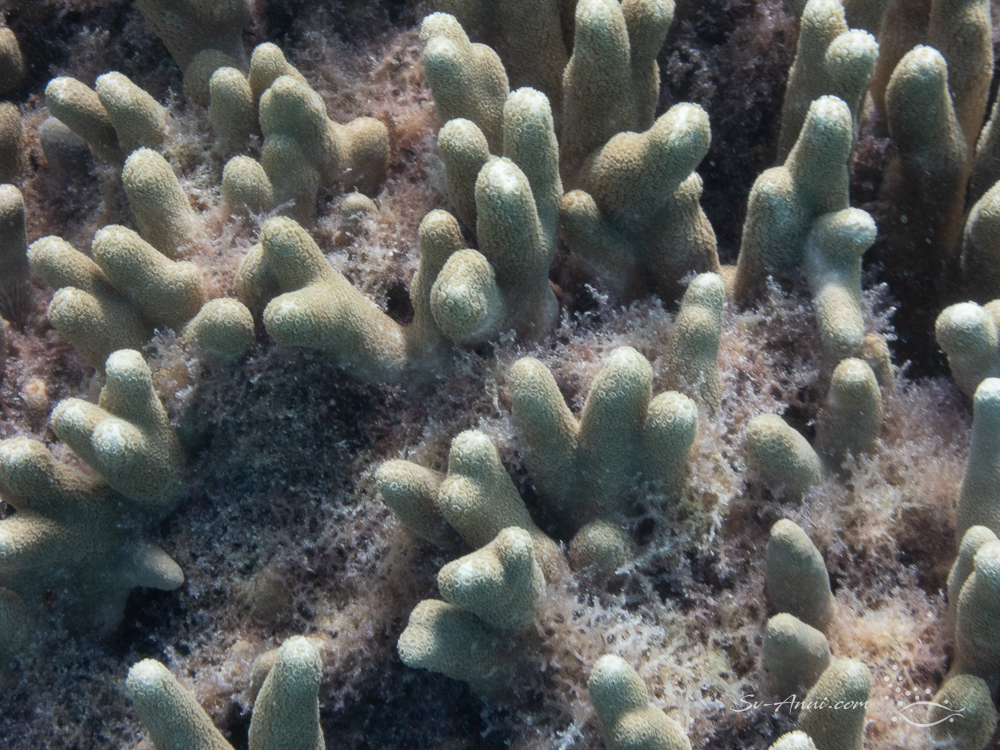 Some of the Porite mounds are invaded by ‘Entangled/mat-like’ macroalgae which according to our friends on Eye On The Reef highly limit coral larvae from landing to start new coral colonies. At least the turtles love it though, being one of the favourite foods for juvenile green turtles. We are told this is the way of all coral reefs if we don’t reverse climate change immediately, as a shift from coral to algae is what is currently occurring around the world.