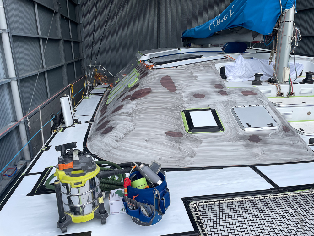No painting on deck, just the cabin dome… but such a long process! Would hate to have to do the decks as well – what a nightmare. It should look blindingly bright once done… it’d better, given the cost!