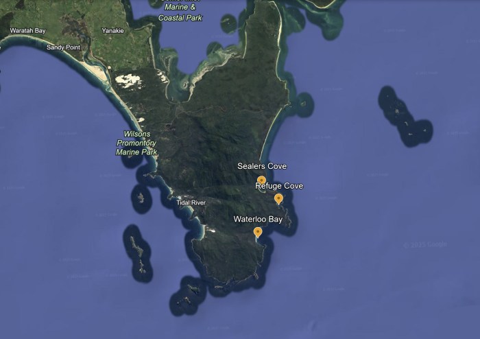 Wild weather dominated this week, pinning us to the Eastern side of Wilsons Promontory. There are worse places to spend time at, but it is just as well we are not in a hurry to get to Melbourne!