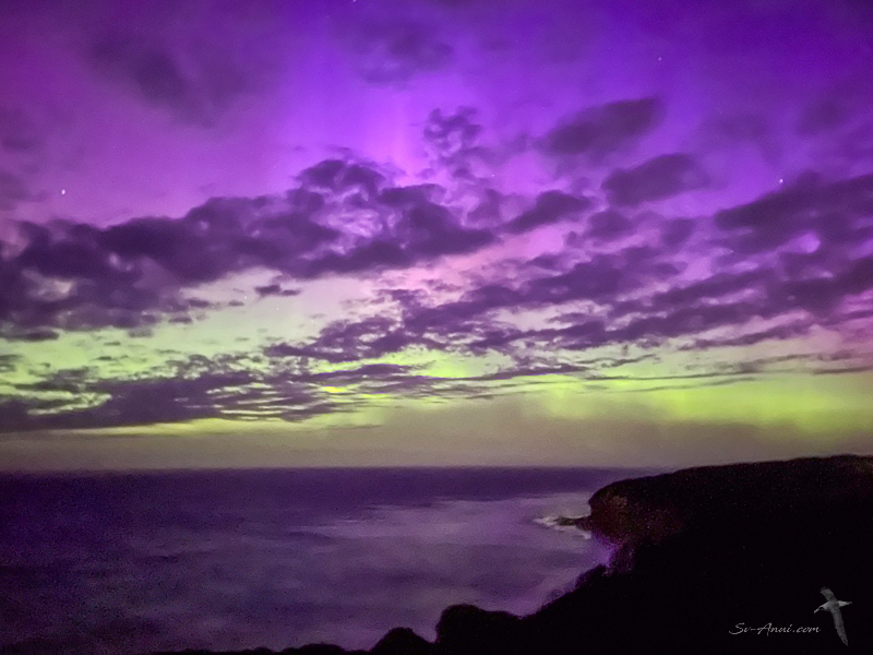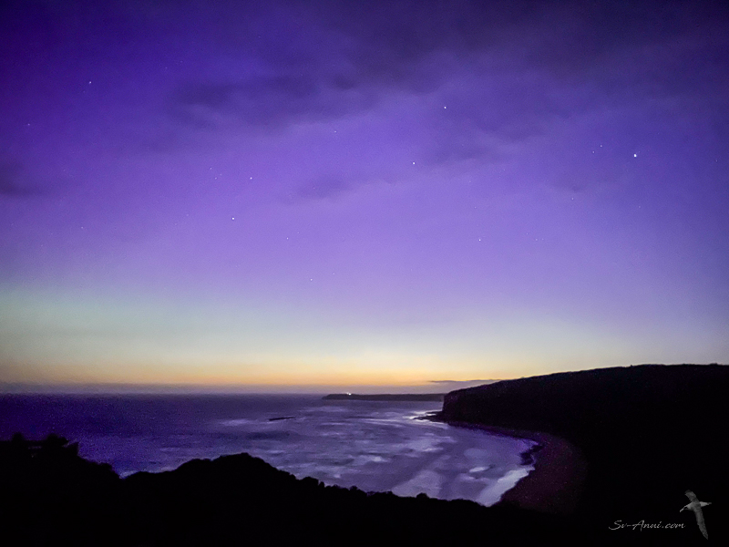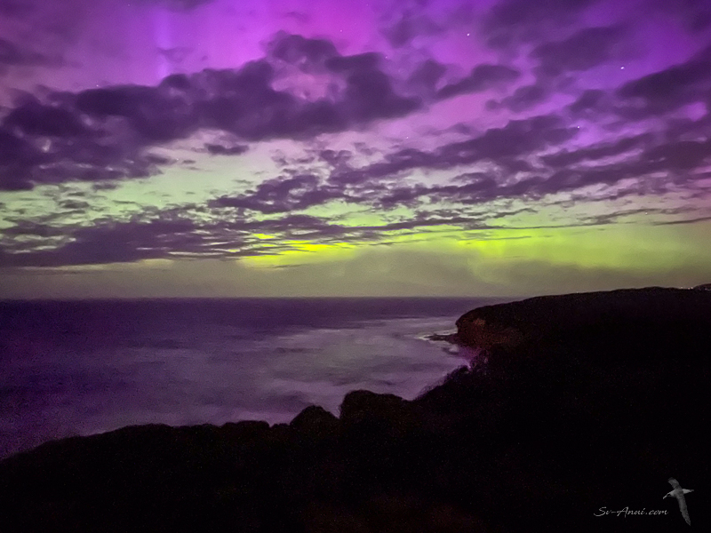 We are lucky on the Surf Coast, being away from brightly lit towns and only a few minutes drive from the best viewing spots. It is perfect for astrophotography. That night, even though it was too overcast for Milky Way shots, it was stunning for the Southern Lights! A faint glow was visible with the naked eye, but the Aurora was unmistakable through the camera lens.