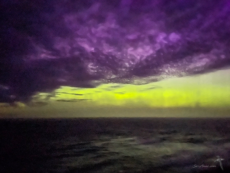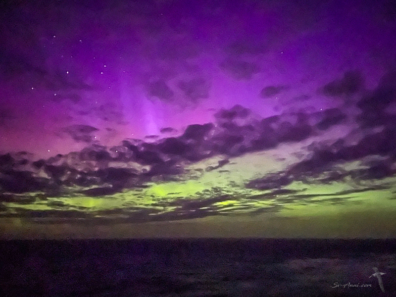 I subscribe to the Australian Space Weather Forecasting Centre Aurora Alerts issued by the Bureau of Meteorology. We were told that a severe geomagnetic storm was sweeping past Earth thanks to a powerful solar flare and fast-moving coronal mass ejection from the Sun, making this an unusually strong event. And as is often the case the best viewing conditions were in the southern states.