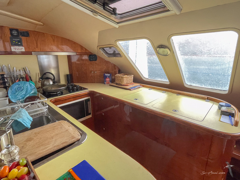Our third week afloat has been a quiet one weather wise, but frantic maintenance-wise. We focused on Anui’s galley revamp in our old home port. We are expecting the work to take two weeks, so we are at the halfway mark.