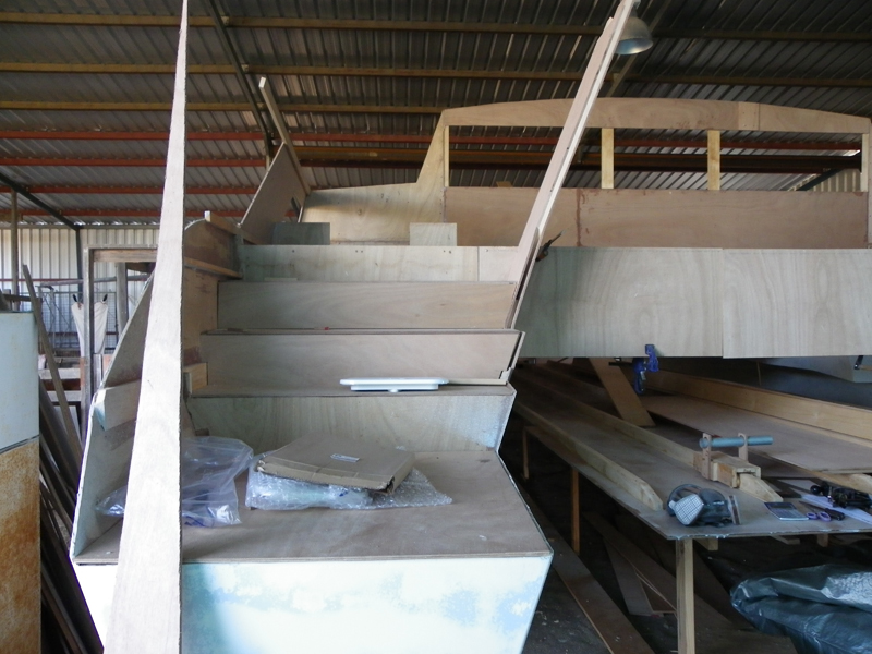 OBD10 Published 27/08/2014 at 800 × 600 Big progress: two hulls are joined, the bridge deck is done, we can see the sugar scoop steps!