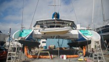 We are high and dry at the Mackay shipyard! We were hauled out last Friday and are now perched on blocks as we re-power Anui and attend to an unexpected discovery.